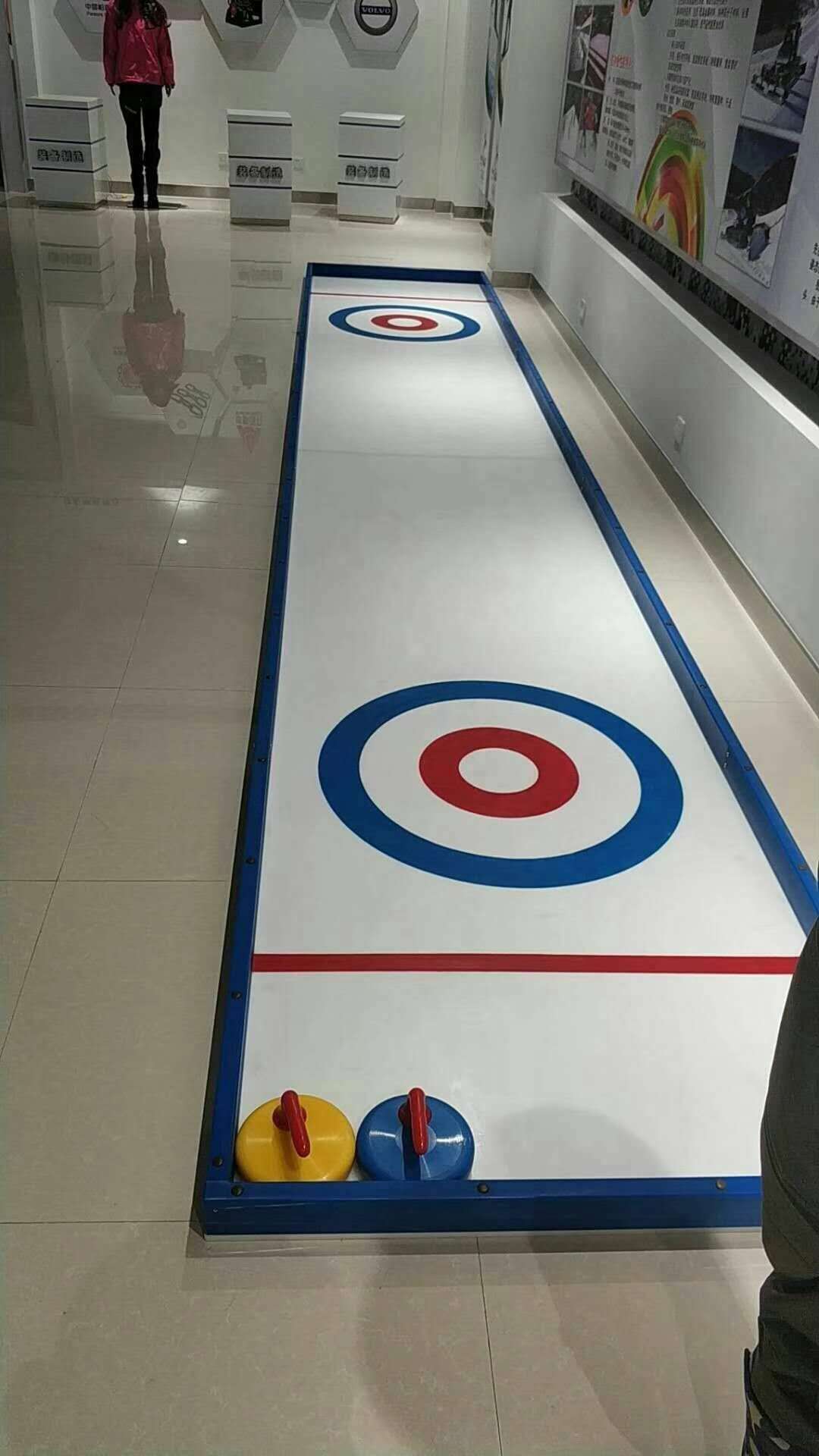 陸地冰壺設備中小學學校定制規格特別多,主要是根據場地大小的定制版,目前7.2*1.2M,9.7*1.6M,13*2M,15*2M,12*2M等規格都可以接受預定,完全不受室內、室外、空間大小的限制,而且意外的是可以隨時拆卸、組裝根據活動的需求,真正做到拆裝10分鐘,可隨時玩耍N小時。